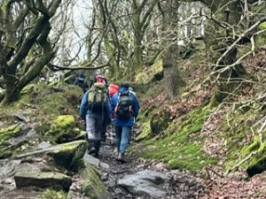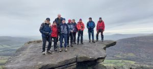 14 met at Mytham Bridge, 1 set off on alternative walk (home) and 2 unfortunately had to turn back after a while. Route took us across the weir at Bamford Mills and north up the trail to the Ladybower Dam. Crossed the dam and climbed up through the woods to Bamford Edge, stopping for coffee on way up. Further photo stops and lunch on Bamford Edge. Return to Bamford was via Upper Hurst Farm, Hurstclough Lane and the golf course. Thanks everyone for your company.