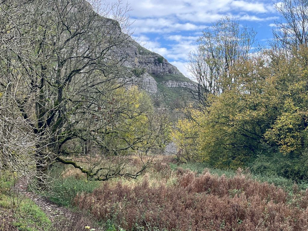 the Limestone Way. Luckily the forecast of wind and rain hadn’t materialised. We crossed a few fields before descending into Cales Dale and then turned west into
