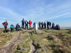 Shortly after coffee we passed the Grouse pub and after a short road walk headed up to White Edge via the Lodge. Lunch along White Edge, again see pic, plus a pic of the group at White Edge trig point.