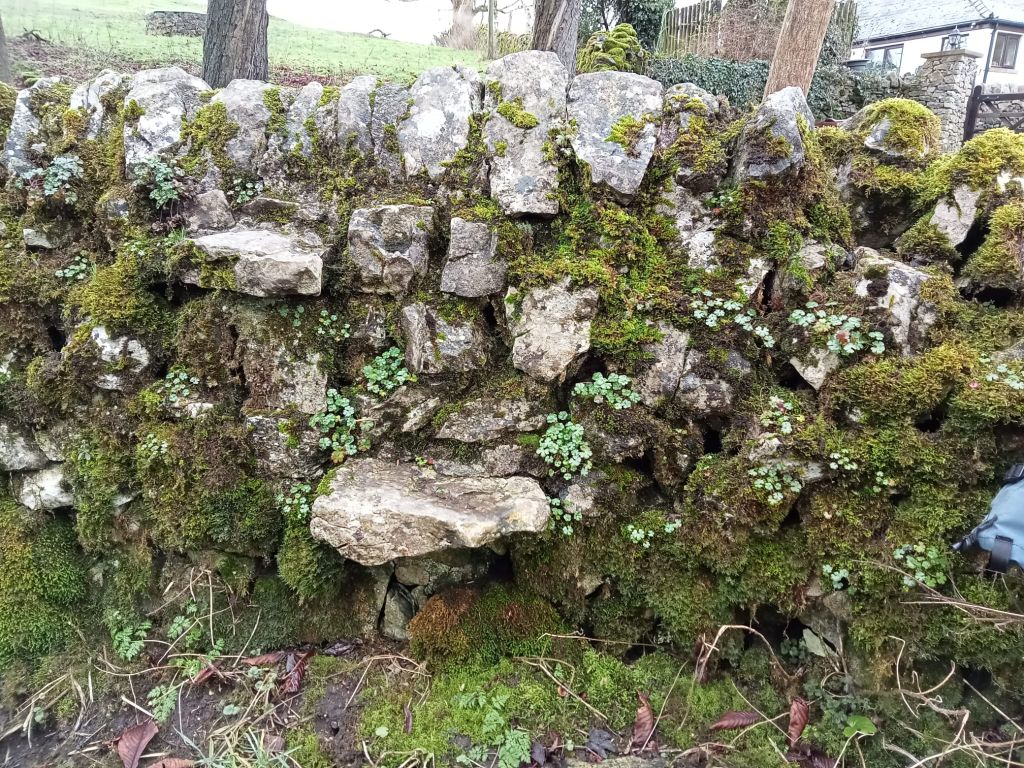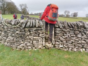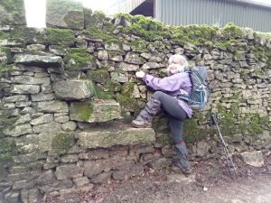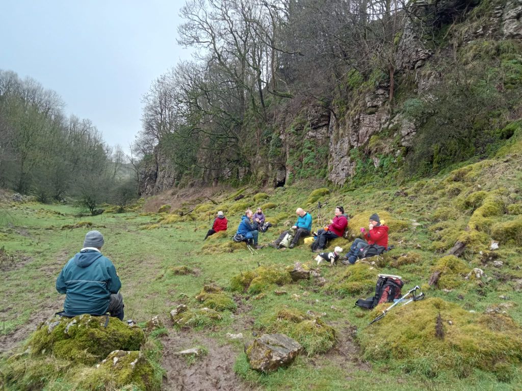The weather didn’t look very promising as the four of us were leaving Sheffield in thick fog, but things had definitely improved by the time we met up with four others in Peak Forest, and by the end of the walk, there was blue sky and sunshine. This was a walk I’d led a few times before, but in the opposite direction [so noticing and appreciating things from a completely different viewpoint today]. This time we headed south, initially across a few fields, before soon walking down Dam Dale, Hay Dale and Peter Dale, where it was time for the coffee stop. At the top of Monk’s Dale, we left the valley, and climbed uphill on a narrow track between stone walls, towards Wormhill and then followed some paths new to me, always nice to do. One of the recurring themes of the day [as well as all the stone walls almost hidden by their luxurious covering of amazingly green moss] was managing the great variety of numerous stiles, some of them quite challengingly high, with slippery limestone steps and loose top-stones to avoid pulling on. We passed a cow with 999 stamped on its hindquarter, looking somewhat bemused at the photographic interest we were taking in its rear. Then through Hayward Farm, certainly the muddiest section of the walk, with the highest stile yet seen, which fortunately was not on our designated route. Definitely time for a well-earned lunch-stop with clear views over typical White Peak countryside, before dropping down towards Dale Head, and then some walking on quiet roads before joining the path across Loose Hill, and a few more challenging stiles before Peak Forest, where we all enjoyed tea and cakes in the Devonshire Arms.