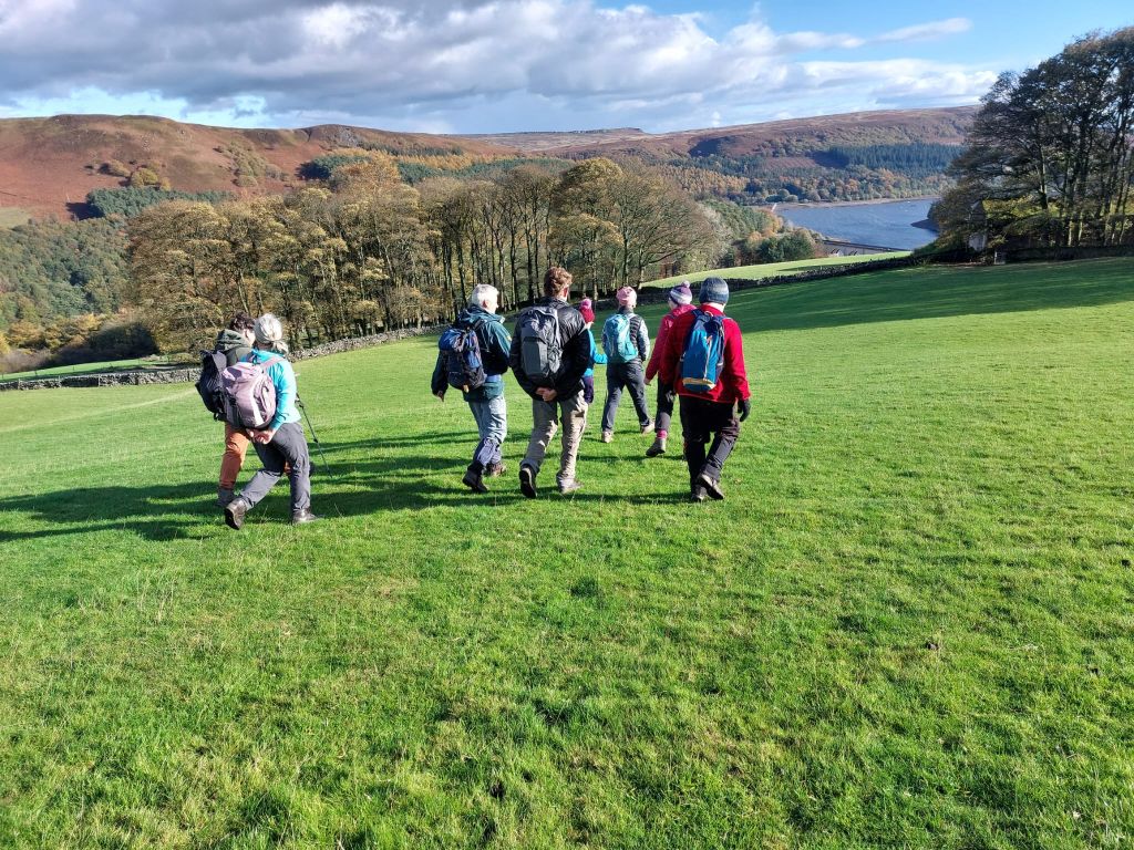 After a chaotic 30mins due to parking problems, 10 of us set of at rocket pace led by Rosie (who also had the role of Chief Navigating Occifer) towards Whinstone Lee. Having got our breath back we headed onwards along Derwent Edge. After Cakes, Hugh caught up with us and JB headed for home. After a coffee and snack break at Back Tor we wandered downhill towards Fairholme. Lunch was taken on the meadow below the dam wall basking the sunshine. At Fairholme we ran into Andy who was out for a bike ride. Having flogged up to Lockerbrook we enjoyed a pleasant walk along Hagg Side and down to the start via Crookhill Farm. Luckily we enjoyed fabulous sharp views throughout the walk. 5 of us met up at The Anglers Rest in Bamford for tea and cake or beer and crisps.
